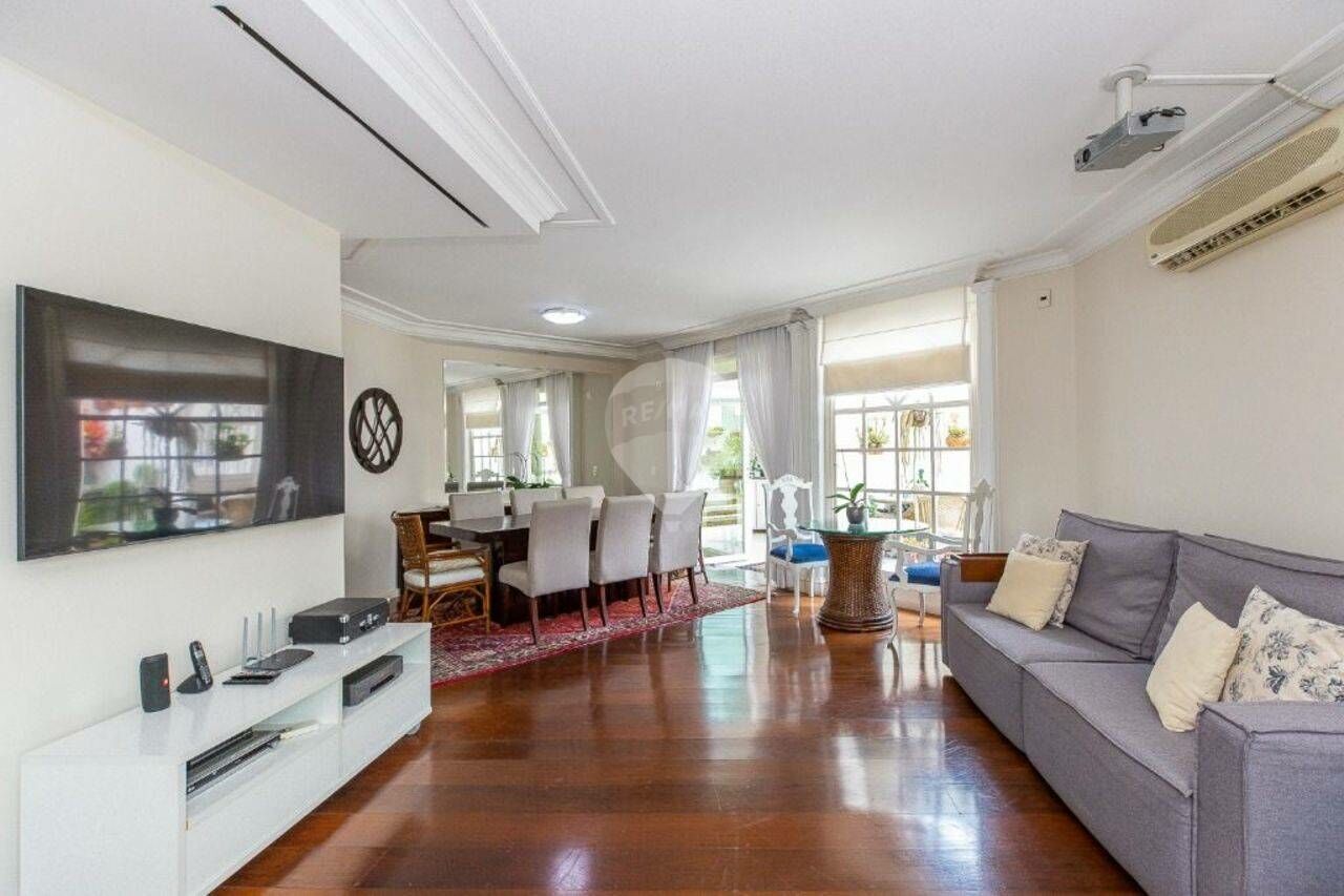 São 205m2 de área útil, os dormitórios são no piso superior deixando o ambiente mais privativo, são quatro dormitórios sendo três suítes, com ótimos armários e ar condicionado, o living amplo para três ambientes integrando com uma deliciosa área externa com piscina e churrasqueira.