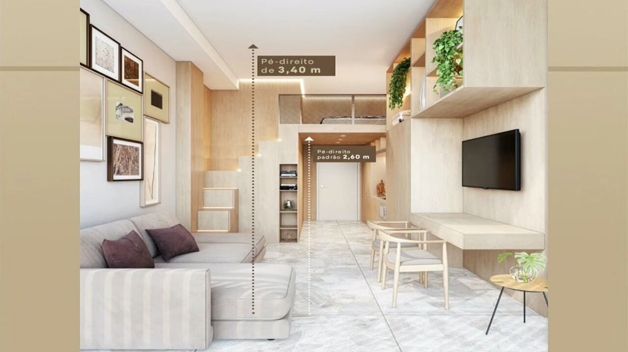 Com uma planta projetada com o pé-direito mais alto do que os apartamentos tradicionais, permite maior amplitude de espaço social dentro de um apartamento compacto.