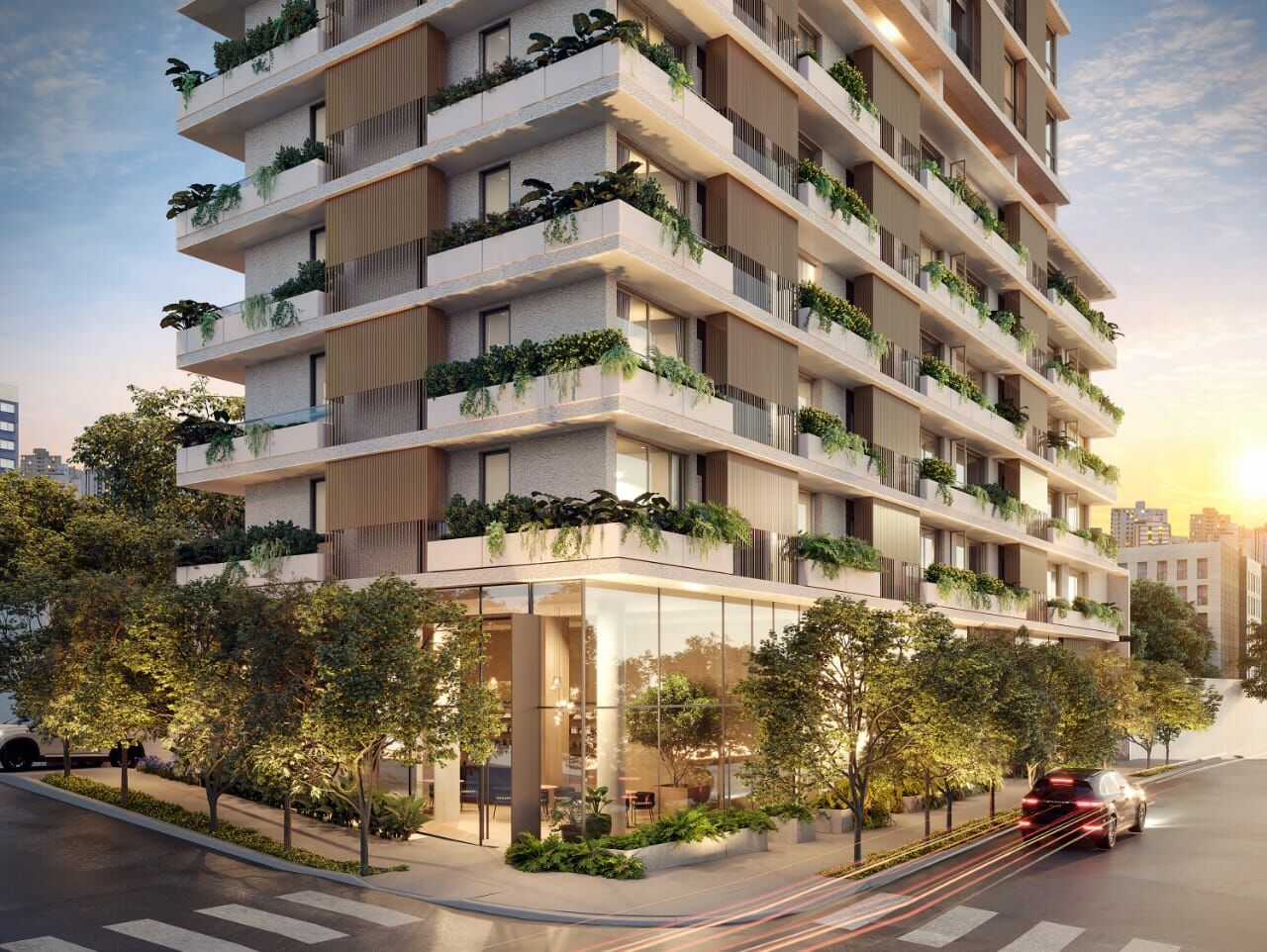 Apartamentos de 1 por andar, na planta, 185m², 2 a 3 suítes, Lavabo, 2 vagas de garagem e lazer sofisticado. Conceito de Casa Suspensa.
