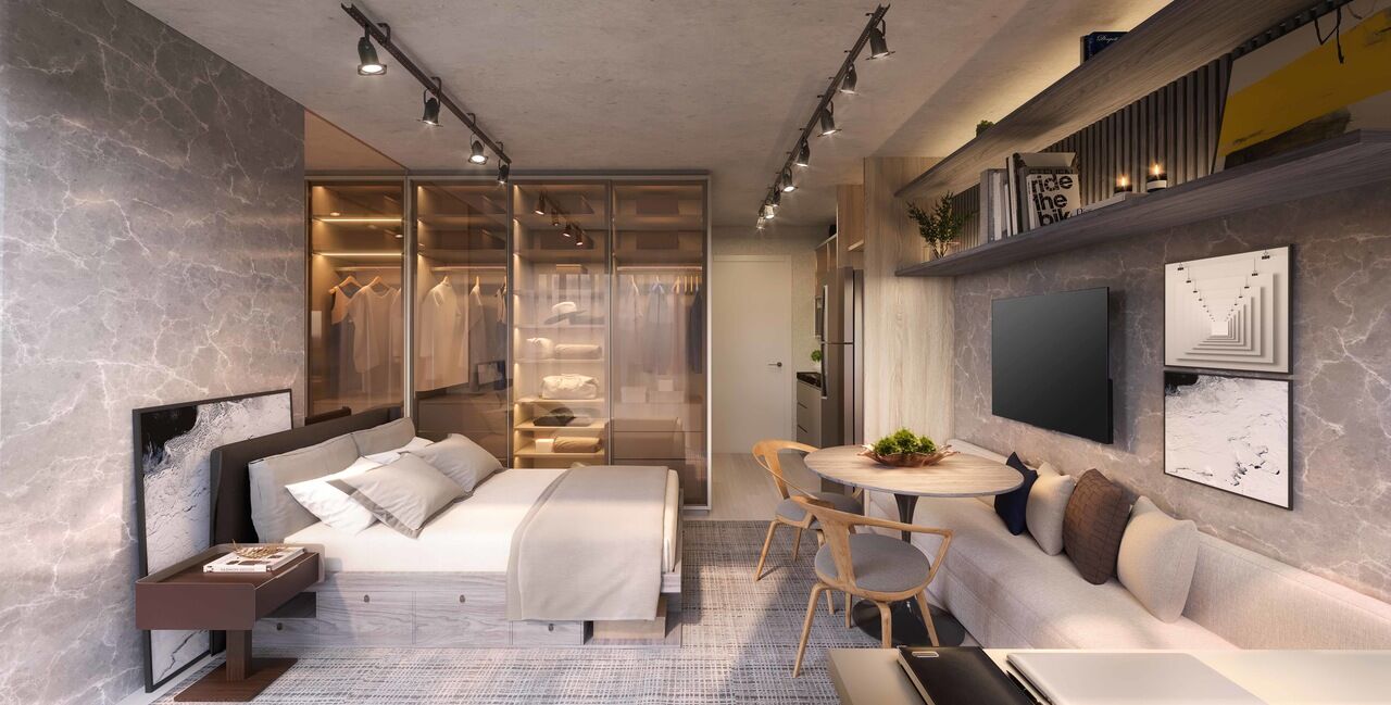 Studios de 24,50m² com lazer e serviços.